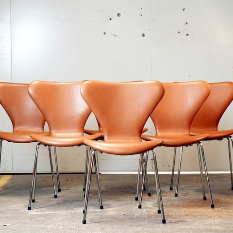 Originale Syverstole i Soft sort læder med Brown Bronze stel.