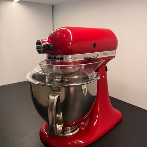 Ny og ubrugt KitchenAid røremaskine i mat sort. Maskinen er købt i april 2025, men jeg har desværre slet ikke fået den brugt. Den har derfor bare stået til pynt på køkkenbordet.