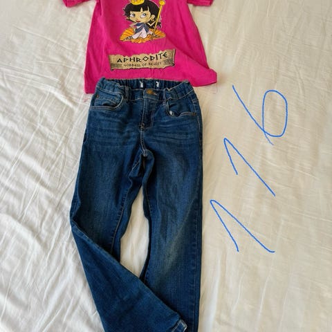 Sættet består af en langærmet T-shirt og bukser med svaj.