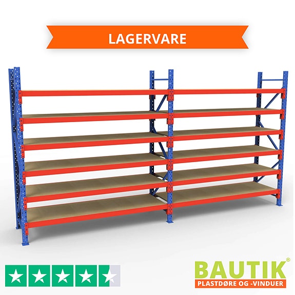 Komplet Lagerreol | 2 Fag | 4 Lag | 180cm Vanger | Højde: 200cm | Dybde: 60cm