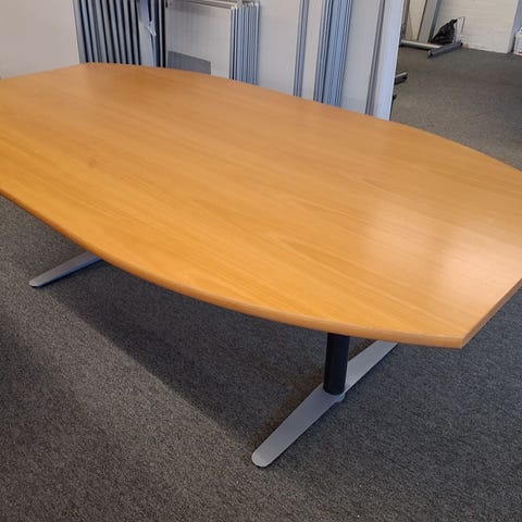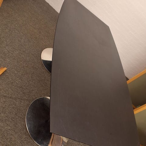 Bordet har en oval form i enderne og lavet i lys finer. Det har metalben, som giver en god stabilitet.,Afhentes i:,Røde Kors Hjallerup (807),Bemærk at mail, chat og beskeder ikke besvares, og varen skal købes på knappen "Gå til varen"