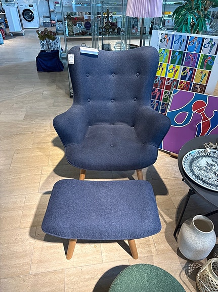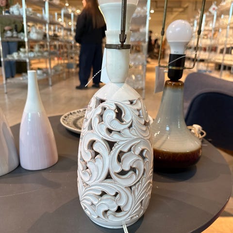 Lampen har en slank, keramisk fod med en glat overflade, der skifter fra lys grå til en mørkere brun nederst. Den er forsynet med en gennemsigtig kuppel og en LED-pære.,Afhentes i:,Røde Kors Kolding (621),Bemærk at mail, chat og beskeder ikke besvares, og varen skal købes på knappen "Gå til varen"
