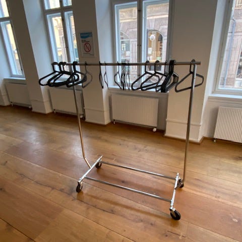 4 tøjstativer sælges - kan afhentes I København Hylde - meget robuste -skal ikke bores i gulv - højde ca 148cm inkl træplade, dybde ca 40