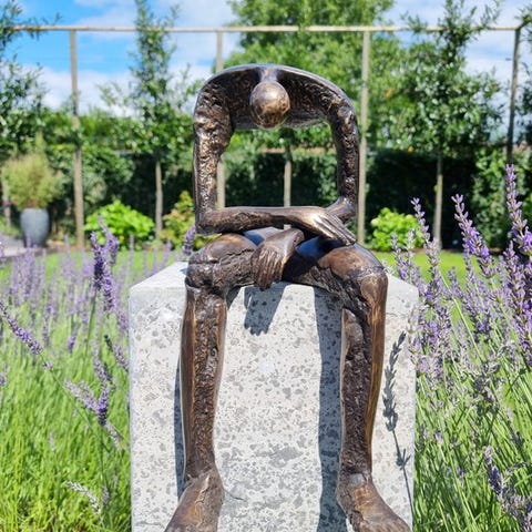 Moderne designet bronzeskulptur. Forestillende en siddende trist kæmpe. Skulpturens dimensioner er som følger (+/-):