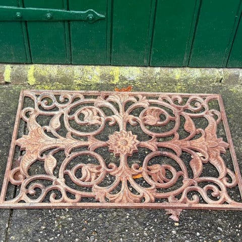 Gevind pudset dørtæppe af støbejern fra Polen, dateret 1990–2000, i metal, målene 40,5 × 69 × 2,3 cm, vægt 4,8 kg, victoriansk design og i rimelig stand. Klik på den blå "gå til varen" knap, for at købe eller byde på denne vare. Den samlede pris vil blive vist inden du afgiver dit bud.