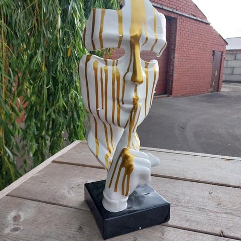 Polyresin-skulptur af en liggende grå hund med titlen 'bulldog cool sculptuur', usigneret, i fremragende stand, oprindelse Europa, dimensioner 13 × 17 × 25 cm. Klik på den blå "gå til varen" knap, for at købe eller byde på denne vare. Den samlede pris vil blive vist inden du afgiver dit bud.