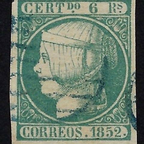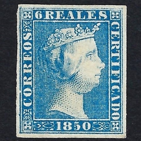 Spanien, Isabel II 19 cuartos castaño y rosa, Edifil 71, i MNG-tilstand (mint no gum) med CEM-certifikat, dateret 1865. Klik på den blå "gå til varen" knap, for at købe eller byde på denne vare. Den samlede pris vil blive vist inden du afgiver dit bud.