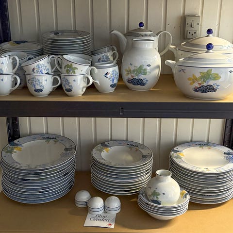 Pragtfuldt sæt af 18 dele porcelæn fra Pip Studio, et førende mærke inden for design af kunstnerisk porcelæn. Sættet er en del af den elegante kollektion Floral Pink, kendetegnet ved et sofistikeret rosa blomstermønster på fin hvid porcelæn, med guldfinish og kanter med røde og hvide kvadrater.