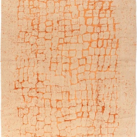 En udsøgt håndknyttet designer-tæppe fra Pakistan, fremstillet af høj kvalitet uld og ægte silke. Den fine knytning og det høje silkeindhold giver en elegant glans og en imponerende dybde i det moderne, abstrakte kunstdesign.