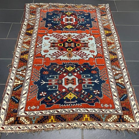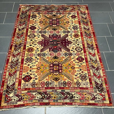 Der tilbydes et håndknyttet Kazak Orient-teppe.