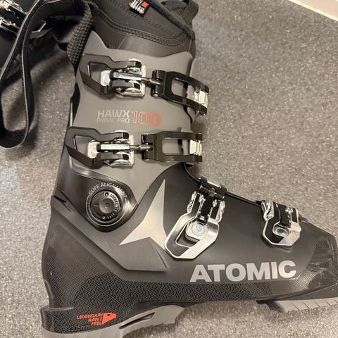 Atomic Hawx Prime 120 skistøvler i sort og rød farve med grip walk. Støvlerne er designet til alpinski. De er velegnede til skiløbere, der ønsker en kombination af komfort og præcision. Brugt til 2 skiferier. Superfede med desværre et halvt nummer for stor.