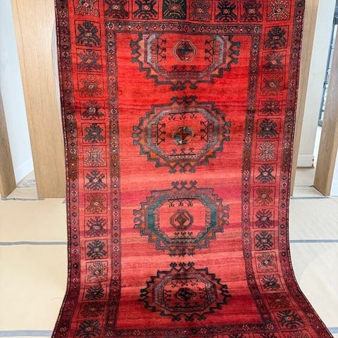 Origin: Unikt håndknyttet Beludz-tæppe med smukke farver.