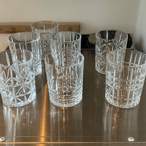 Disse glas er meget kunstnerisk udformede, rigt udskårne og ekstremt blanke. Håndlavet.