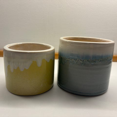 2 smukke keramik urtepotter med flot brunligt glassur