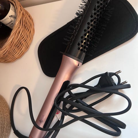 BaByliss hårstyler med udskiftelige børstehoveder i forskellige størrelser. Produktet har et mørkeblåt design og er egnet til personlig hårpleje.
