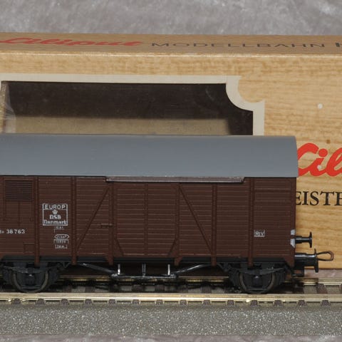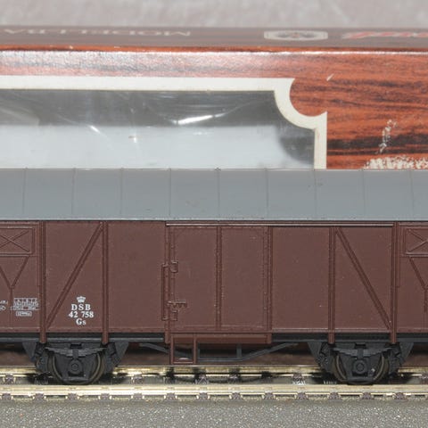Vognen er brugt, og har lidt brugsspor i form af nogle ridser (slidmærker) på taget, samt et lille stykke at taget på bremsehuset som er brækket af, og et trinbræt som er delvis brækket af. Ellers i pæn stand. Koblinger passer til Märklin bøjlekoblinger. Leveres i original æske.