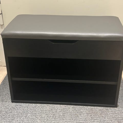 Praktisk og stilren skoreol Jasmina i sort finish med integreret sædepude, ideel til entré, gang eller soveværelse. Skoreolen har plads til op til 6 par sko og gør det nemt og komfortabelt at tage sko af og på.