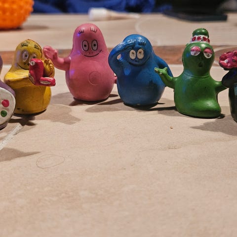 Rød figur "Barbarød djævel". Højde: 5.5 cm. Denne figur har et par sorte streger på bagsiden, ved ikke hvad det er. Ikke forsøgt fjernet.