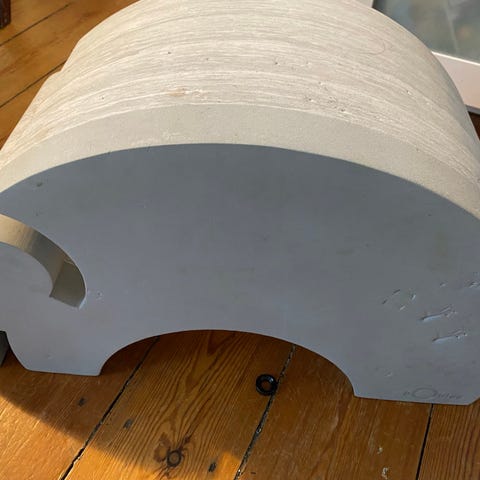 Bobles elefant i flotte blå og lillafarver. Den er brugt, så den har små skrammer mm., men er stadig ret pæn.