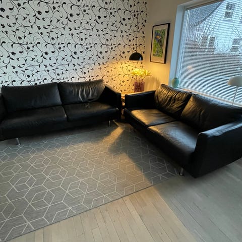 Begge sofaer fremstår i god stand, med minimal slidtage på armlæn og uden betydning for funktion eller komfort.
