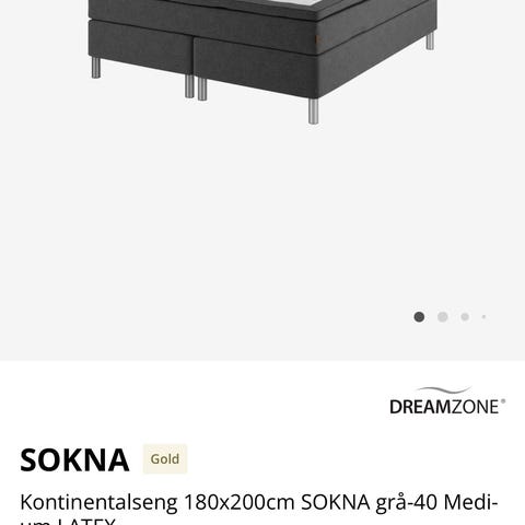 Kontinentalseng 180x200cm SOKNA GOLD, fra Jysk