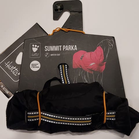 Lækkert vinterdækken til hund. Str. 35. Det har været benyttet ad 2 omgange på gåtur med efterfølgende vask, så stand er rigtig god med meget få hår i.