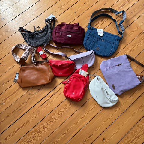 Pull&Bear bumbag i stof, beige farve, designet til unisex brug. Tasken har flere rum med lynlås og knaplukning, egnet til opbevaring af mindre personlige ejendele. Mavetaske skulder taske justerbar fra ca 80cm i diameter til 110cm
