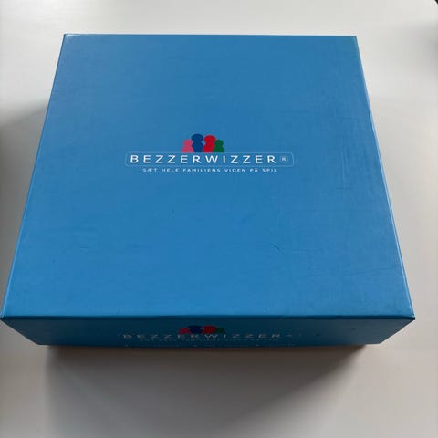 Bezzerwizzer brætspil med spilleplade og brikker. Spillet indeholder forskellige kategorier og udfordringer, der tester spillerens viden og strategi. Velegnet til underholdning og sociale sammenkomster.