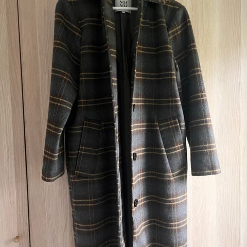 Smuk frakke i smaragd grøn. Knapper foran og lommer i siden. Stribet foer.