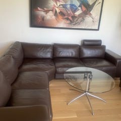 Lækker hjørnesofa af okselæder sælges. Sofaen er nem at vedligeholde, og god at sidde i, den er forresten også god at ligge i. Den er fin, og uden slid. Der følger to nakkestøtter med, dem kan man jo bruge eller lade være som man nu sy.nes. Sofaen sælges grundet pladsmangel.