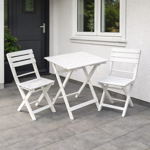 Velholdt Cafésæt sammenklappeligt havebord og to stole i træ.