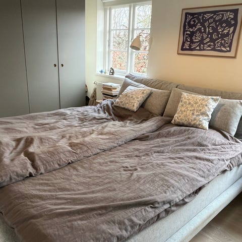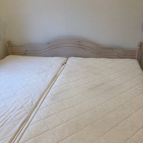 Ilva seng i lyst træ evt. inkl boxmadrasser og sengeborde