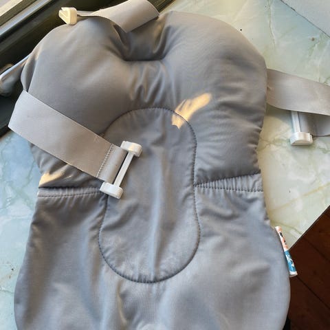 Twistshake folde-badekar i grå. Dertilhørende stativ, som kan foldes sammen og fylder meget lidt. Medfølger desuden babypude/indsats og skyllekande. Brugt i ca. 10 måneder.