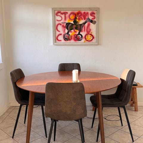 Dejligt rundt spisebord med 6 stole sælges grundet flytning. Skal afhentes af køber og bæres ud af køber.