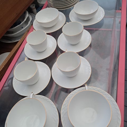 Royal Copenhagen hvid halvblonde, bladfad og flødekande