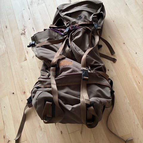 Haglöfs Shosho 6000 rygsæk i blå farve. Rygsækken har flere justerbare stropper og polstret hoftebælte for komfort. Den er designet til udendørs brug med god bæreevne og rummelighed.flere lommer , indbygget regnslag,