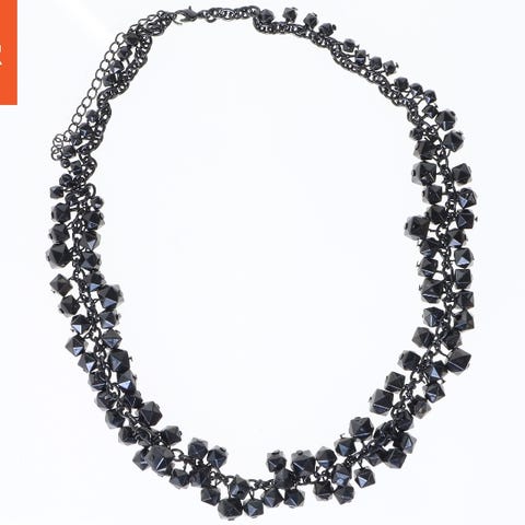 Denne artikel er en sort perlekæde, der måler 61 cm i længden. Kæden består af forskellige perler med en låsemekanisme for at sikre, at den sidder korrekt omkring halsen. Perlerne har en mat sort finish, og designet inkluderer større aflang perler, der giver et stilfuldt og unikt look. Kæden er velegnet til både formelle og uformelle lejligheder.