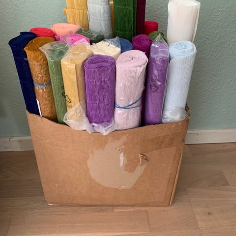 Sælger ud af mit crepepapir. 13 ruller crepepapir fra Cartotecnica Rossi. Nogle er helt ubrugt, og jeg har kun brugt meget lidt af de andre.