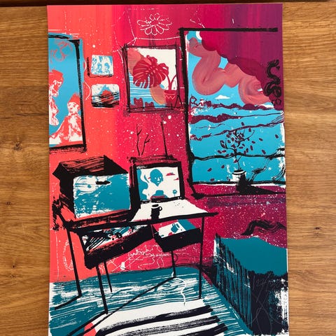 Serigrafi, Simon Fensholm, motiv: Wrong Impressions, b: 45 h: 62,5, Med ramme og passepartout 2500kr. Kan sendes med eller uden ramme. Fast pris. Kan sendes via dba, gls og dao.