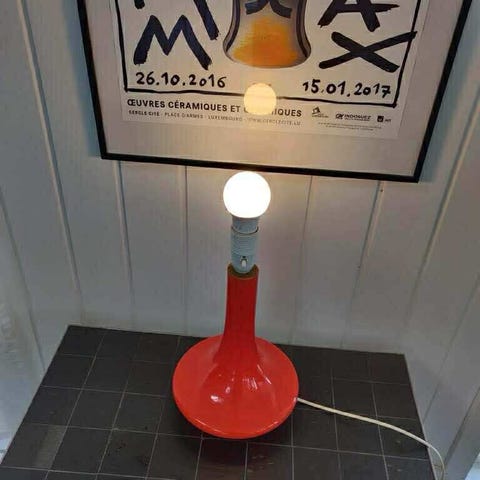 Den originale fabriksmærke sidder stadig under lampen.