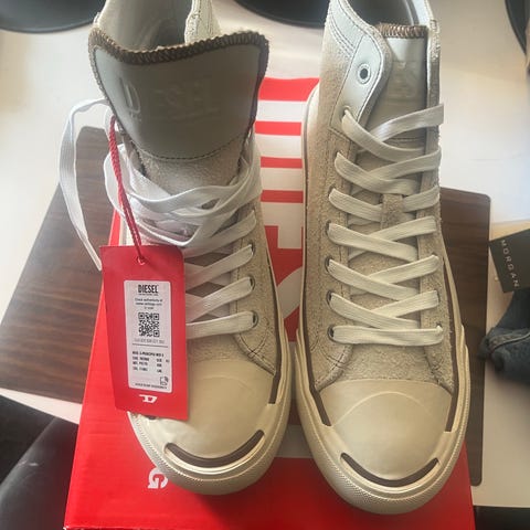 Diesel sneakers i størrelse 38 med pink farve. Skoene har hvide snørebånd og en sort detalje på bagsiden. Ydersålen er lavet af gummi med mønster for bedre greb. Skoene er designet til hverdagsbrug.