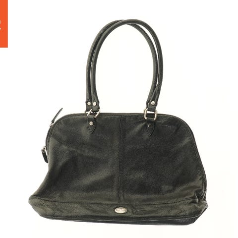 Skuldertaske i sort læder med en justerbar rem. Tasken har et enkelt rum med lynlås på bagsiden og en klaplukning på forsiden. Den har en kompakt størrelse, som er praktisk til daglig brug eller som en let rejsetaske.