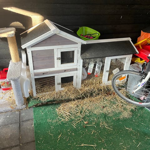 Jeg har to han kaniner / brødre på to år som jeg vil sælge sammen med bur og udstyr .