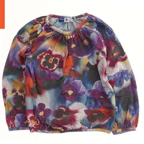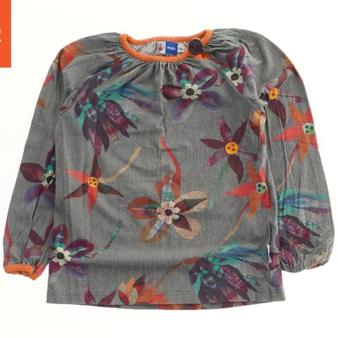 Denne overgangsjakke har et blomstermønster i forskellige farver, og er primært rosa. Den har en hætte og en lynlås foran. Jakken har grå manchetter på ærmerne og en elastisk kant nederst.