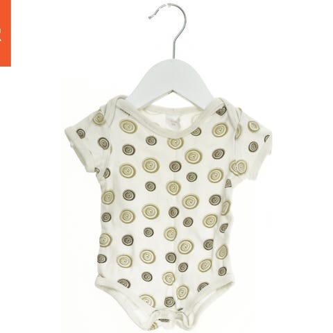 En langærmet bodystocking i hvid med grå cirkusmønster, herunder telt, stjerner og forskellige dyr såsom elefanter og løver. Den har trykknapper på forsiden og mellem benene, og er designet til nem på- og afklædning.