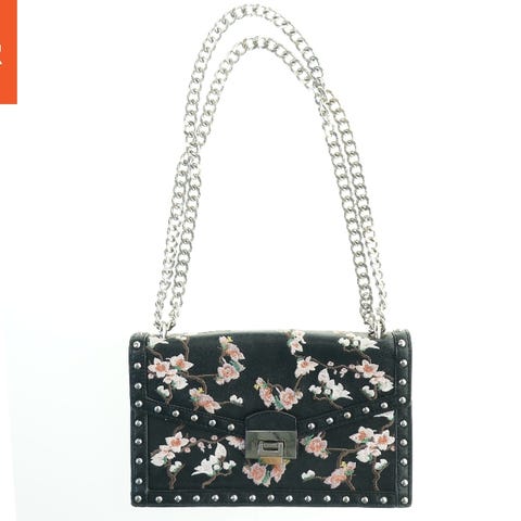 Håndtaske i sort farve med en størrelse på 33x34 cm. Tasken har en enkel og klassisk design med en klapøvre og en justerbar skulderrem. Der er en metalplade med branding foran på klappen og små metalfødder på bunden for at beskytte tasken mod skader. Tasken har en robust struktur egnet til daglig brug.