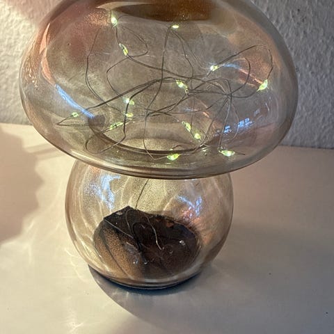 Mundblæst glaslampe fra Seed Lightning, som giver et behageligt lys
