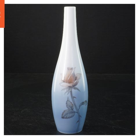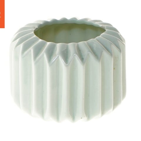 med det gamle stempel. Denne vase er lavet af hvidt porcelæn med en riflet overflade, hvilket giver et elegant udseende. Den er 8 cm høj og egner sig godt til små blomsterarrangementer.