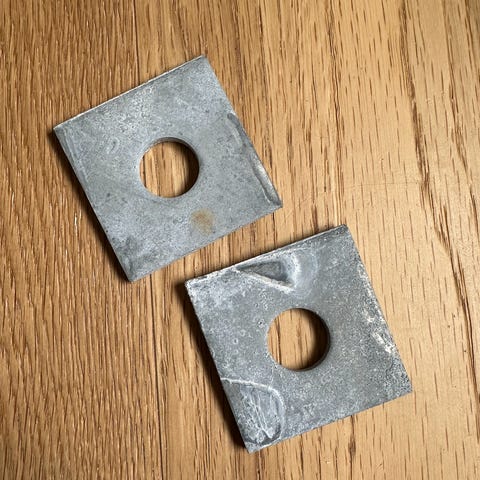 NKT Firkantskive DIN436 FZV med dimensionerne 75x75x7 mm og gevindstørrelse M16. Sælges i pakke med 25 stk.