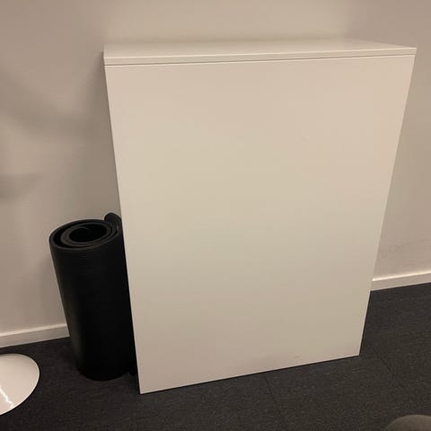 Sæt bestående af to hvide modulopbevaringsmøbler med glatte overflader. Velegnet til opbevaring og organisering i forskellige rum som kontor, butik eller hjem. Møblerne har et enkelt og funktionelt design.